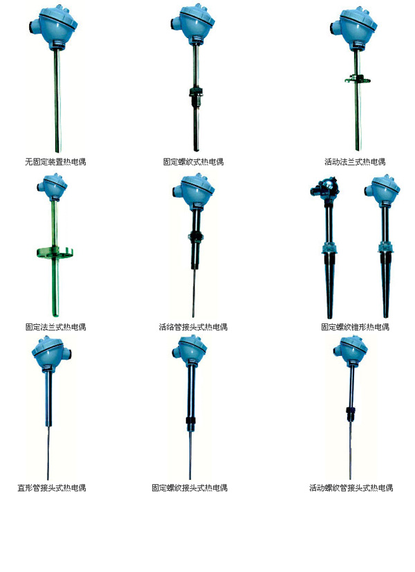 本廠主要生產熱電偶、熱電阻等一次儀表、生產的裝配式熱電偶采用國際IEC標準。同時,采用機械電子工業部熱電偶統一設計的系列、型譜。